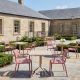 Accompanying the Sky Table are the Paris stacking armchairs in Marsala, designed for both indoor and outdoor use. These chairs are constructed using a single injection of polypropylene reinforced with glass fiber, achieved through the latest air moulding technology. The neutral tones of the Marsala color add a touch of elegance, making these chairs a versatile choice for any setting. Their stackable design allows for space-saving storage when not in use, while the durable materials ensure their resistance to unraveling, rust, and decay.