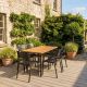 The 6 Seater Canyon Walnut Werzalit Table with Classic Legs & Black Paris Chairs is more than just a dining set; it's a commitment to quality and aesthetic appeal. Whether hosting a dinner party, enjoying family meals, or relaxing outdoors, this set provides a comfortable, stylish, and practical setting for memorable dining experiences.