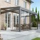 The sliding glass wall system consists of multiple glass panels that allow you to close off your garden room, providing protection against cold, rain, and wind. The glass panels can be individually slid on a rail with wheels.