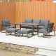 With its clean lines and modern grey finish, this lounge set works beautifully in a wide range of outdoor spaces, including patios, terraces and decking areas. The combination of a three-seat sofa, two lounge chairs and two footstools gives you plenty of options for stretching out, entertaining guests or creating a comfortable setting for family time outdoors. The rectangular table also provides a practical surface for drinks, snacks and outdoor meals.
