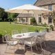 Included in this set is a 3m round parasol, which provides shade and protection from the sun. The parasol features a durable and weather-resistant canopy that can be easily opened and closed with a convenient crank handle. The 25kg parasol base provides stability and ensures that your parasol stays securely in place, even on windy days.