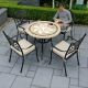 Add comfort and style to your outdoor spaces with the Dalkey 90cm Table with 4 Cast Aluminium Hampshire Bronze Chairs. It's a set that marries the durability of metalwork with the elegance of stone design.