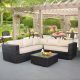 The San Jose sofa dining set invites you to do just that. The contemporary look and sleek design of this set will capture the imagination. The gorgeous chocolate rattan interwoven gives it a luscious look and complemented with plump cushions you can’t help but stretch out on it. The cushions are high on the back giving that extra comfort and support and a high armrest gives additional comfort. The L shaped sofa is large enough to sit several people comfortably so you won’t have any worries when friends or family come over to visit.